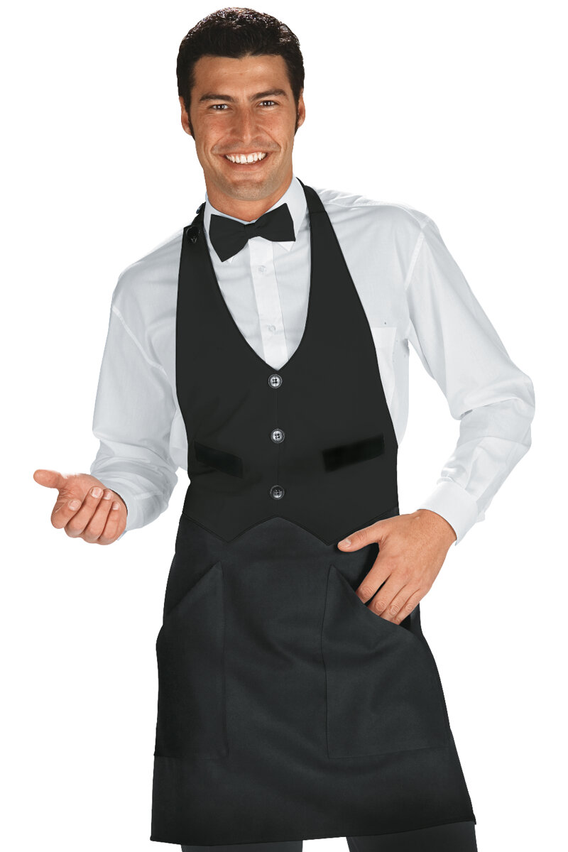 GREMBIULE SERVIZIO, DOPPIA TASCA IN VITA, DETTAGLIO ABBOTTONATURA CENTRALE