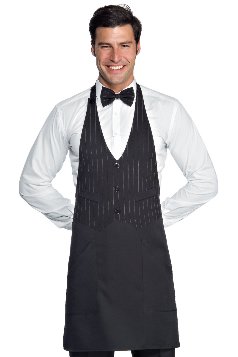 GREMBIULE SERVIZIO, DOPPIA TASCA IN VITA, DETTAGLIO ABBOTTONATURA CENTRALE