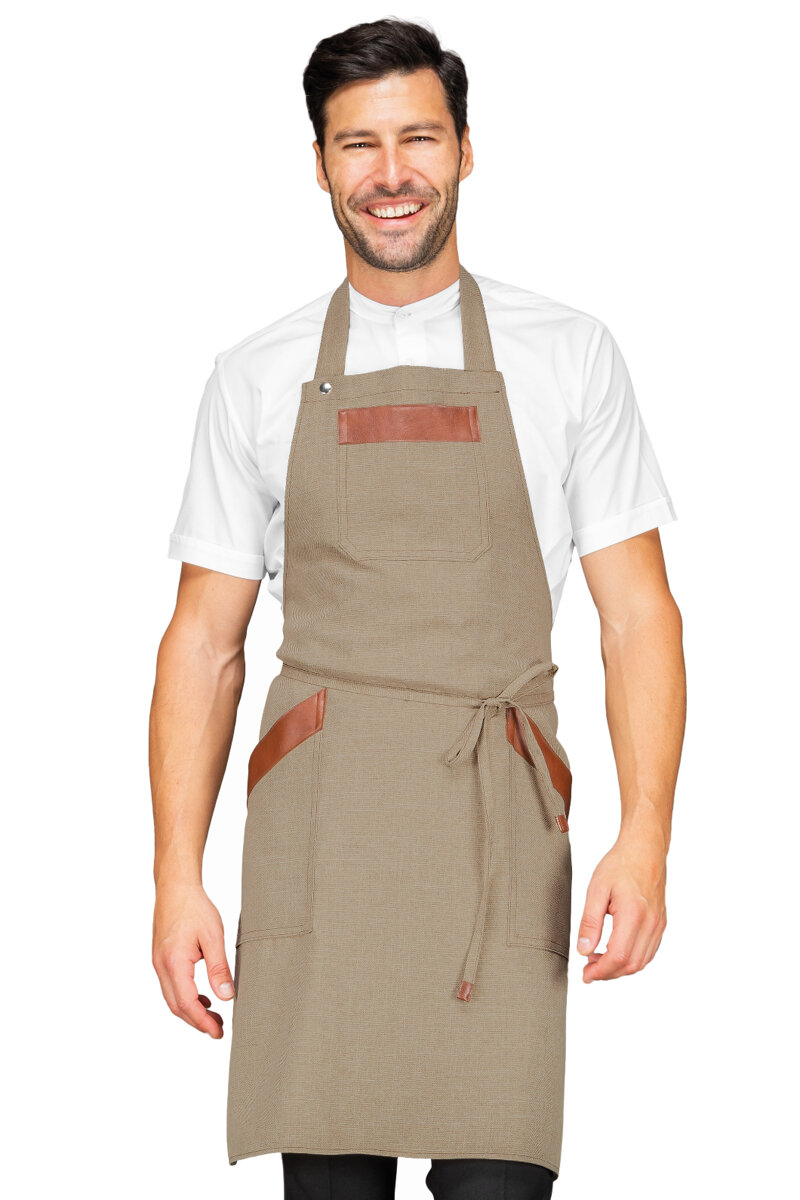 GREMBIULE DA SERVIZIO, TASCA DOPPIA IN VITA, INSERTI IN ECOPELLE