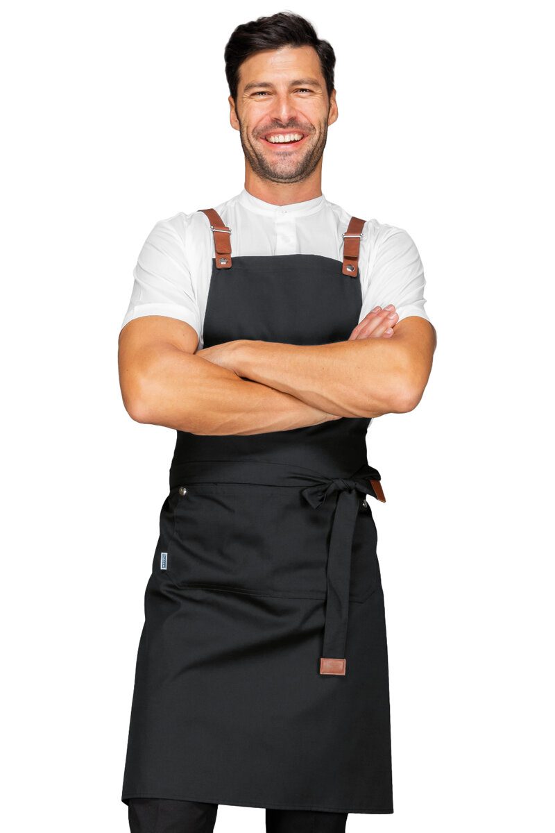 GREMBIULE DA SERVIZIO, TASCA DOPPIA IN VITA, INSERTI IN ECOPELLE